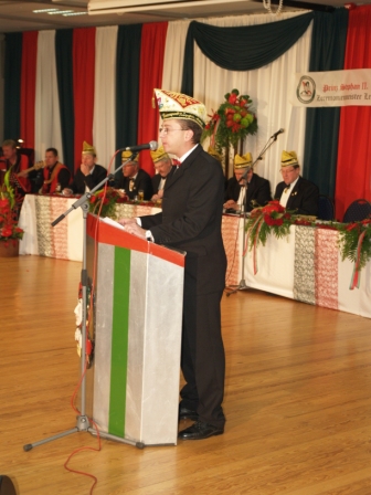 René Wiese, Präsident der Narrenzunft, begrüßte die Gäste mit launigen Worten und überstellte dann die Narrenzünftler Stephan Lenzen und Leo Arnold für den Verlauf der Karnevalssession 2010/ 2011 an das Karnevalskomitee der Stadt Eschweiler.