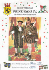 Hans IV. vor heimischen Publikum. Kostümsitzung der Narrenzunft
